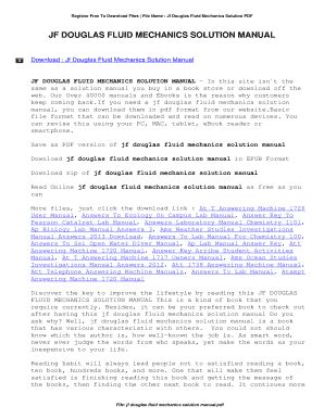 Best solution manual fluid mechanics douglas Read EBook Sites No Sign Up - As we know, Read EBook is a great way to spend leisure time. Almost every month, there are new Ebook being released and there are numerous brand new Ebook as well.